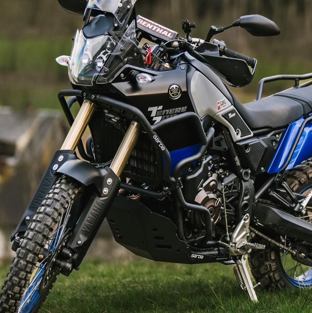 Crash bars GARDA MAX for Yamaha Tenere 700 – euro 4, euro 5. They are designed to protect the motorcycle in the harshest conditions. The main part of them is 25x2mm pipe, which is designed to withstand heavy loads. The base of the crash bars are 4 support points per side, which gives us maximum support of the structure with optimal distribution of forces to all points. The whole thing was welded using the TIG method. We have tried to make the entire design as compact as possible to reduce drag when driving, and to reduce the weight of the structure.