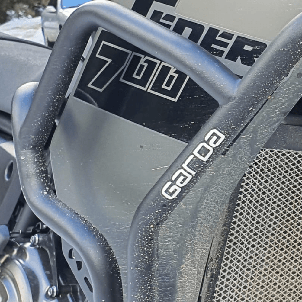 Crash bars GARDA MAX for Yamaha Tenere Explore – euro 4, euro 5. They are designed to protect the motorcycle in the harshest conditions. The main part of them is 25x2mm pipe, which is designed to withstand heavy loads. The base of the crash bars are 4 support points per side, which gives us maximum support of the structure with optimal distribution of forces to all points. The whole thing was welded using the TIG method. We have tried to make the entire design as compact as possible to reduce drag when driving, and to reduce the weight of the structure.
