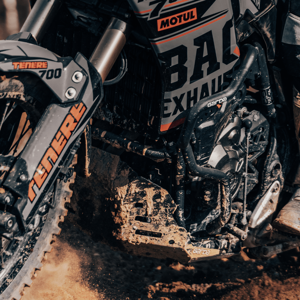 GARDA PRO Crash Bars Yamaha Tenere 700 – euro 4, euro 5. They are designed to protect the motorcycle in the harshest conditions. The main part of them is 25x2mm pipe, which is designed to withstand heavy loads. The basis of the crash bars are 3 support points per side, which gives us maximum support of the structure with optimal distribution of forces to all points. The whole thing was welded using the TIG method. We have tried to make the entire design as compact as possible to reduce drag when driving, and to reduce the weight of the structure.