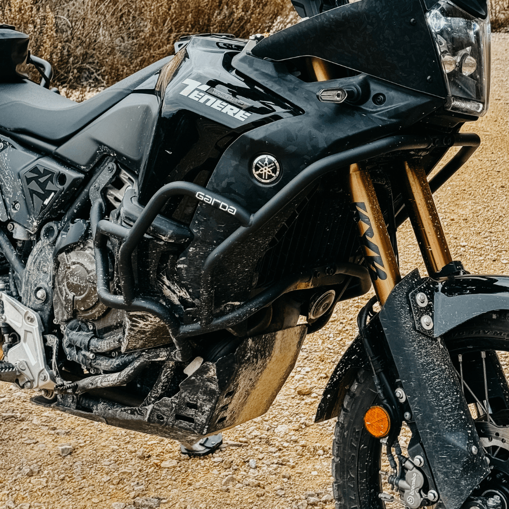 GARDA MAX crash bars for Yamaha Tenere World Raid. They are designed to protect the motorcycle in the toughest conditions. The main part of them is 25x2mm pipe, which is designed to withstand heavy loads. The base of the crash bars are 4 support points per side, which gives us maximum support of the structure with optimal distribution of forces to all points. The whole thing was welded using the TIG method. We have tried to make the entire design as compact as possible to reduce air resistance while driving, and to reduce the weight of the structure.