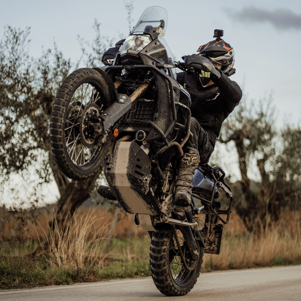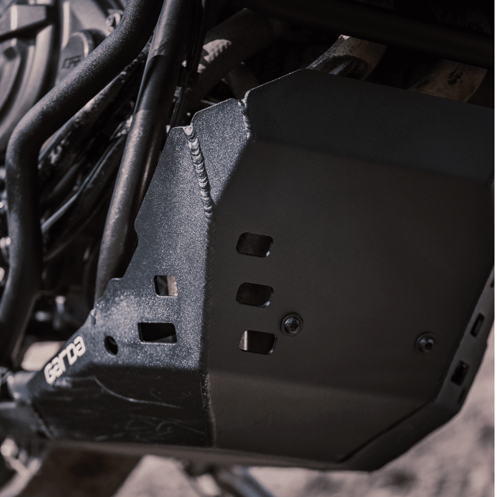 GARDA Skid Plate provides protection for the most important parts of the motorcycle and additionally provides protection for the frame and exhaust components from flying rocks from under the front wheel. We weld the shield on both sides to be sure that it will do its job even in the toughest conditions. In addition, all parts are sandblasted then powder coated to ensure a long product life. An 8mm thick high-density polyethylene (HDPE) sway bar protector is added to the aluminum cover, which will protect this protruding part of the suspension, but through its flexibility, will not interfere with its operation.