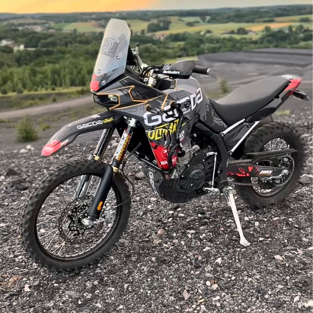 The GARDA Skid Plate for KOVE 800X PRO and RALLY is a unified, high-performance solution tailored for both adventure and rally riders. It protects the engine, header pipe, and lower frame, no matter the terrain.